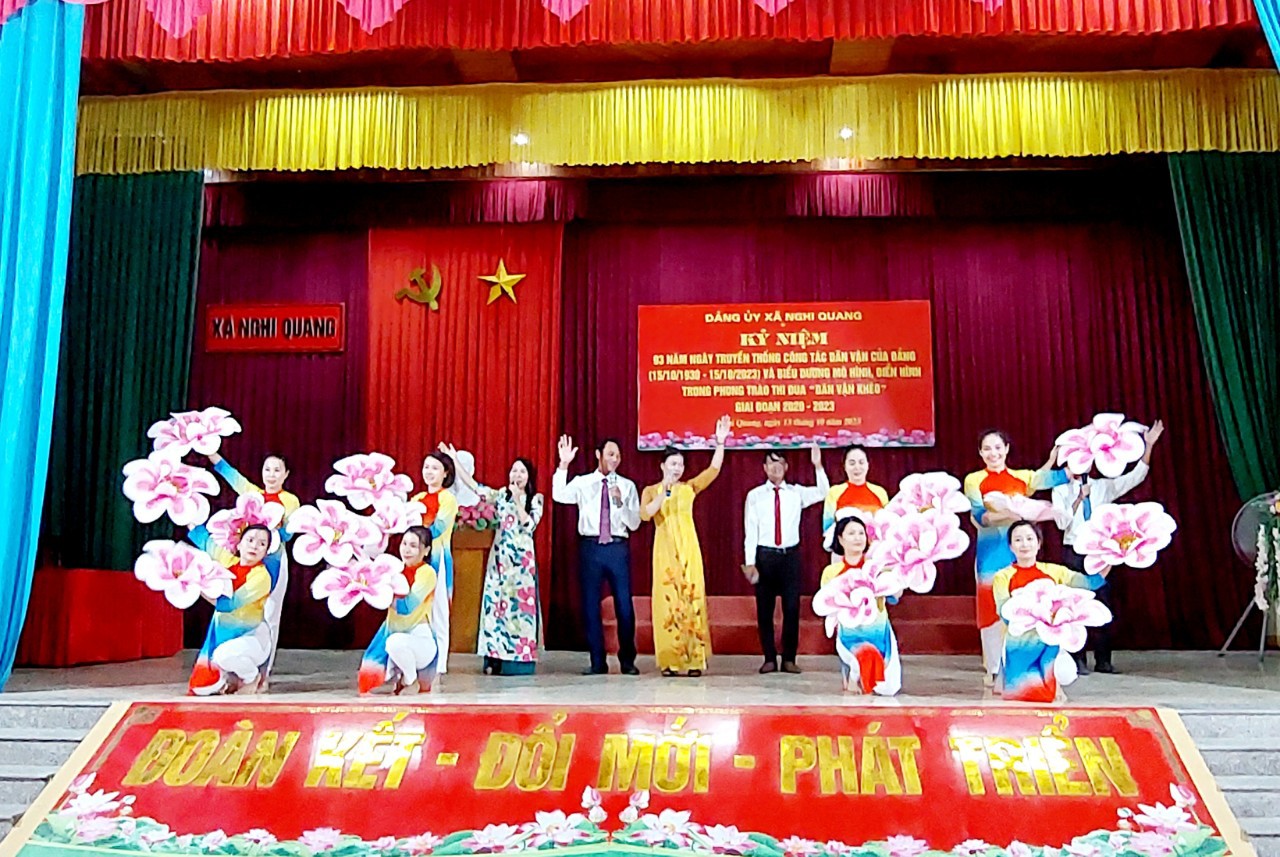 Tại hội nghị, đã được nghe truyền thống 93 năm công tác Dân vận của Đảng, học tập tác phẩm “Dân vận” của Bác Hồ. Dịp này, Ban Chấp hành Đảng bộ xã Nghi Quang đã tặng giấy khen 15 tập thể, 1 cá nhân điển hình trong phong trào thi đua “Dân vận khéo” giai đoạn 2020 - 2023.